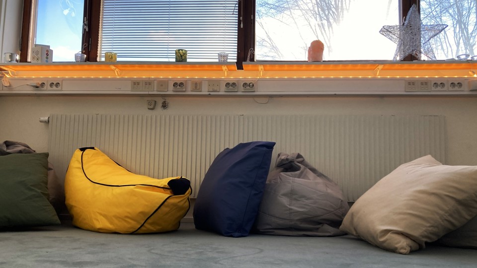 Vi varvar ner med avslappningsmusik, enkla övningar och meditation.